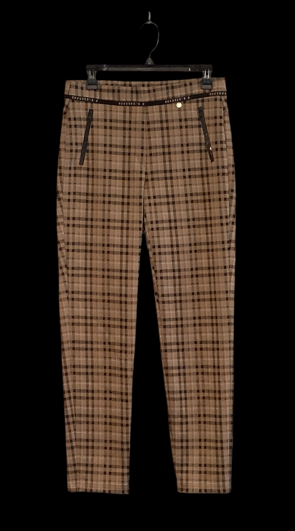 Tan /Black Plaid Pull-On Straight Leg Pant by Robell. 75% Polyester, 20% Viscose, 5% Elasthan