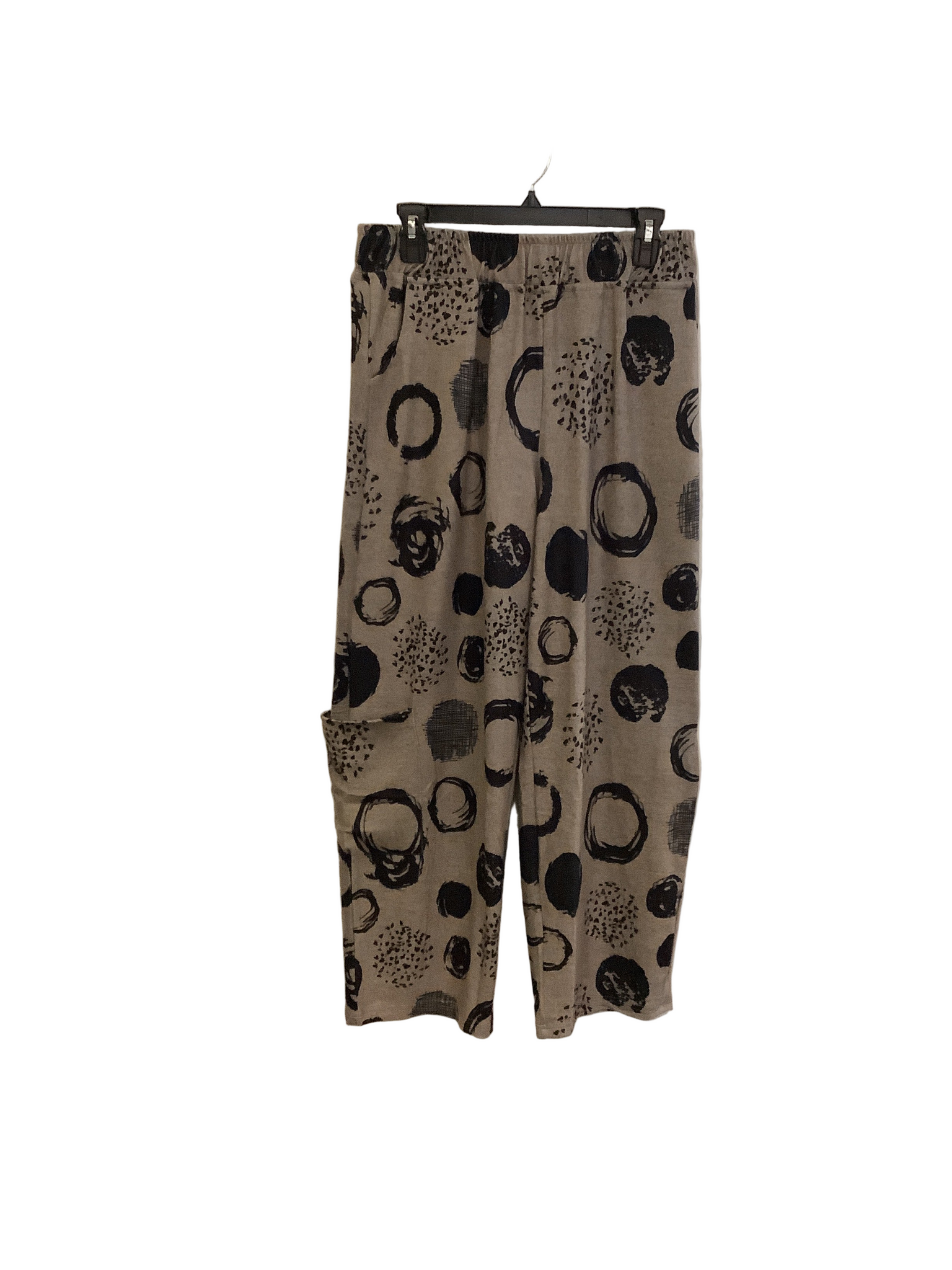 Heather Taupe w/ Black Circle Design Pull On Pants w/Side Pockets by Shana.