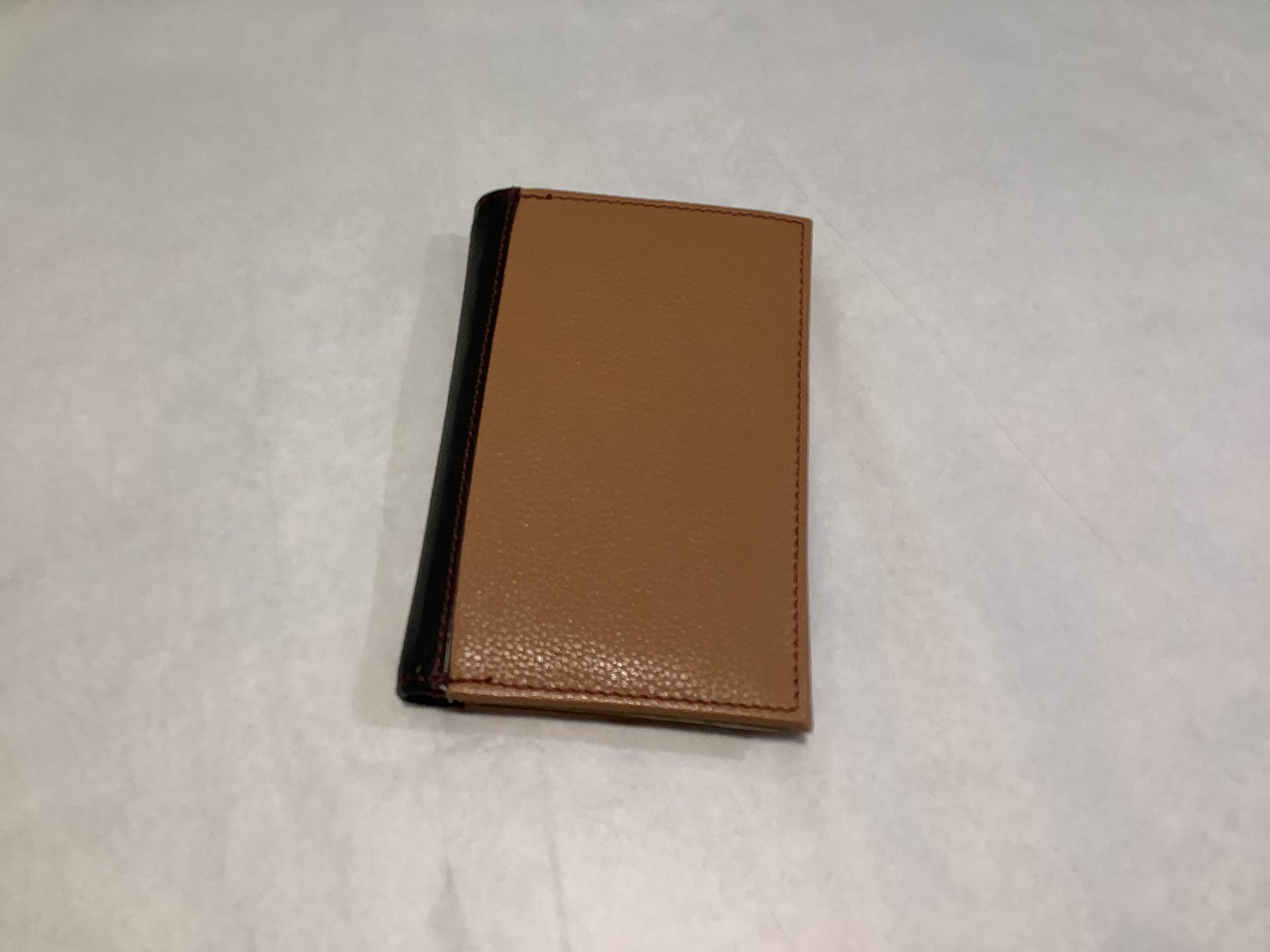 Tan Wallet w/Brown Trim, 7 Card Slots by Soruka. 4” W x 6” High